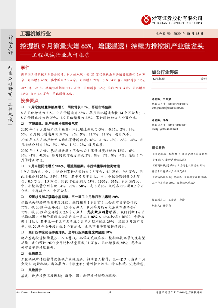 浙商证券:工程机械行业点评报告:挖掘机9月销量大增65%,增速提速!持续力推挖机产业链龙头.pdf