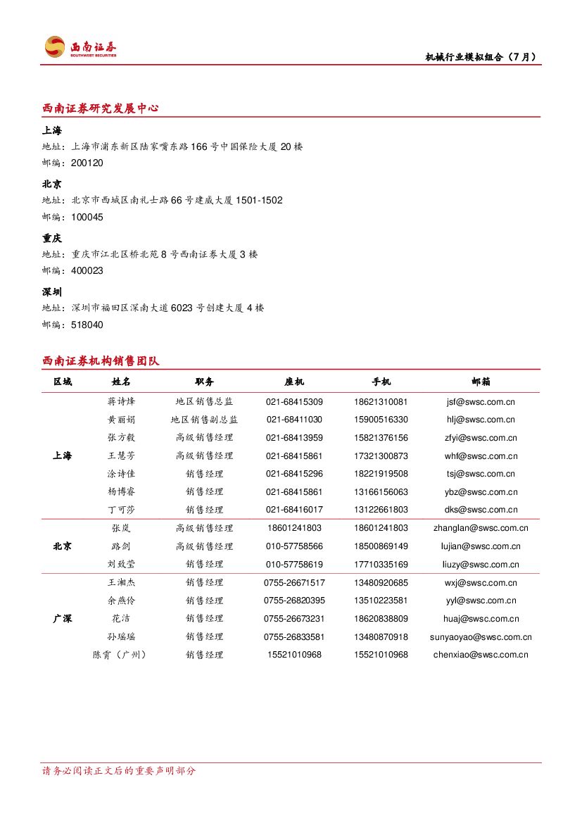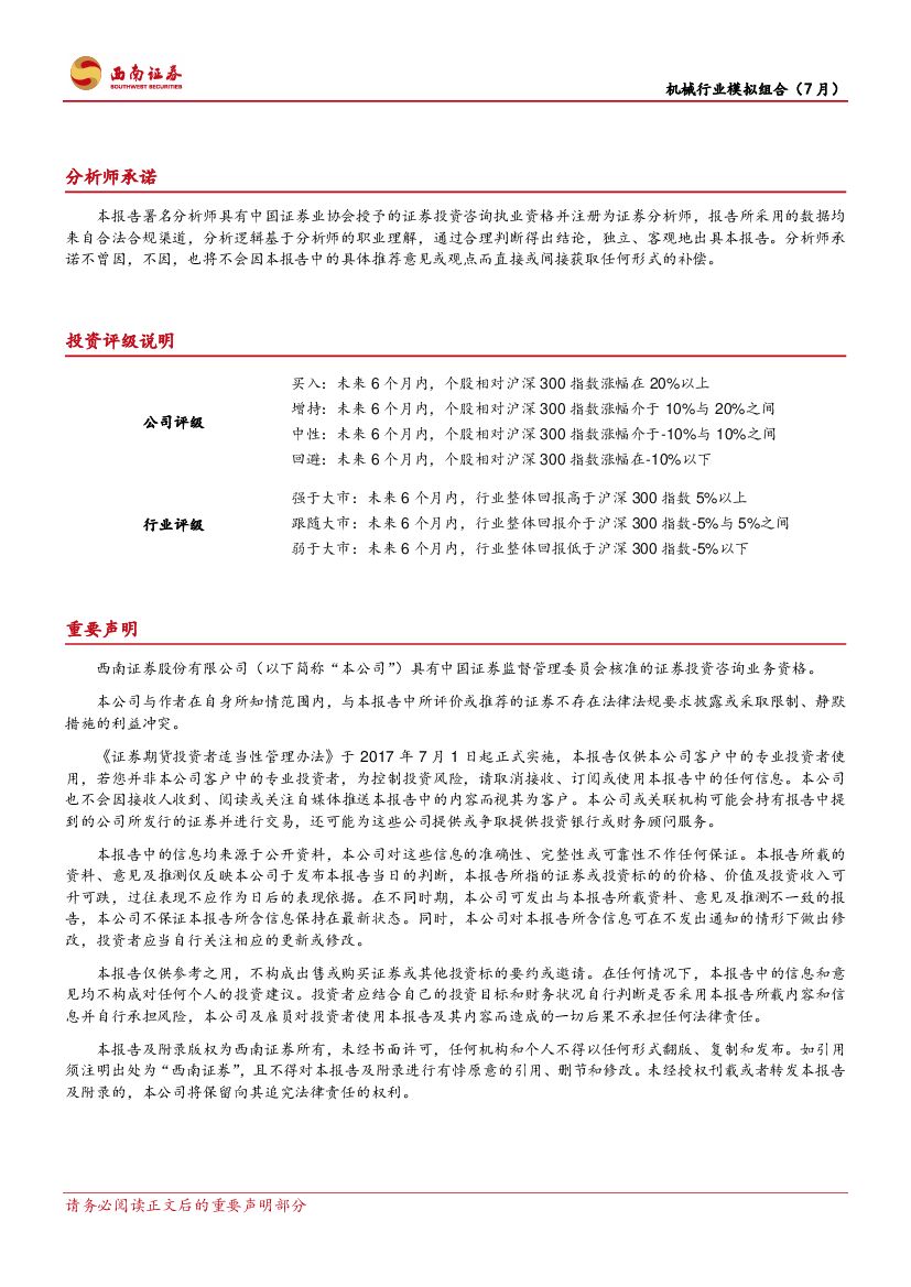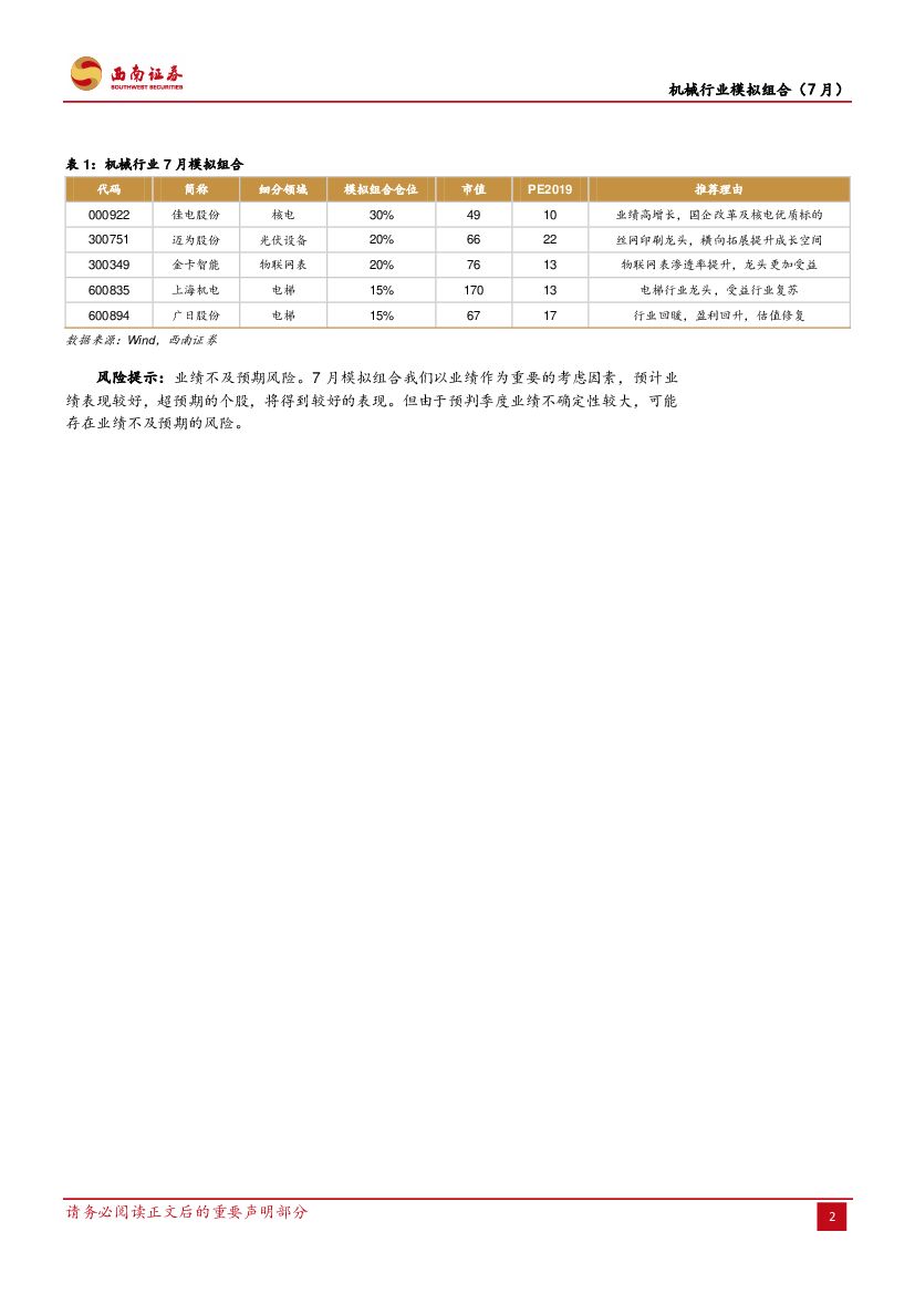 西南证券:机械行业模拟组合(7月):中报预告高峰期,注重业绩.pdf