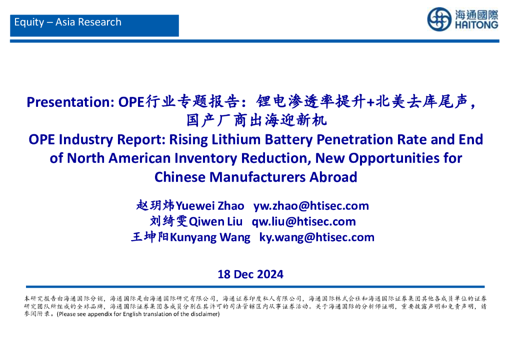 海通国际:OPE行业专题报告:锂电渗透率提升+北美去库尾声,国产厂商出海迎新机.pdf