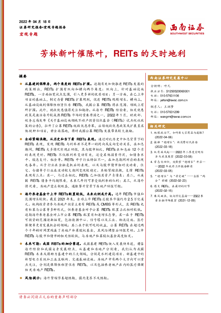 西南证券:宏观专题:芳林新叶催陈叶,REITs的天时地利.pdf