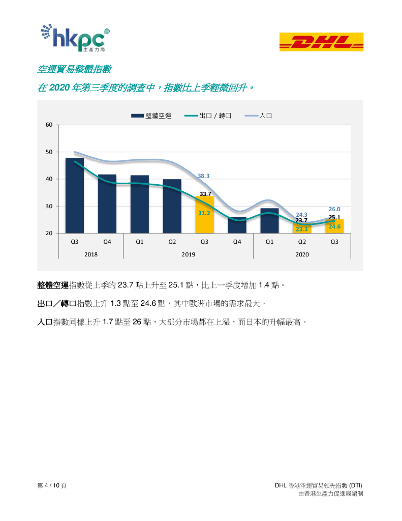 香港生产力促进局:2020年第三季度DHL香港空运贸易领先指数(DTI)报告(繁体版).pdf