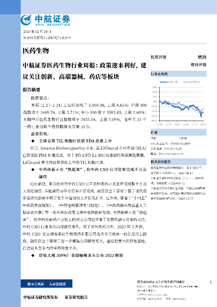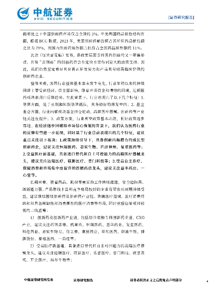 中航证券:中航证券医药生物行业周报:政策迎来利好,建 议关注创新、高端器械、药店等板块.pdf