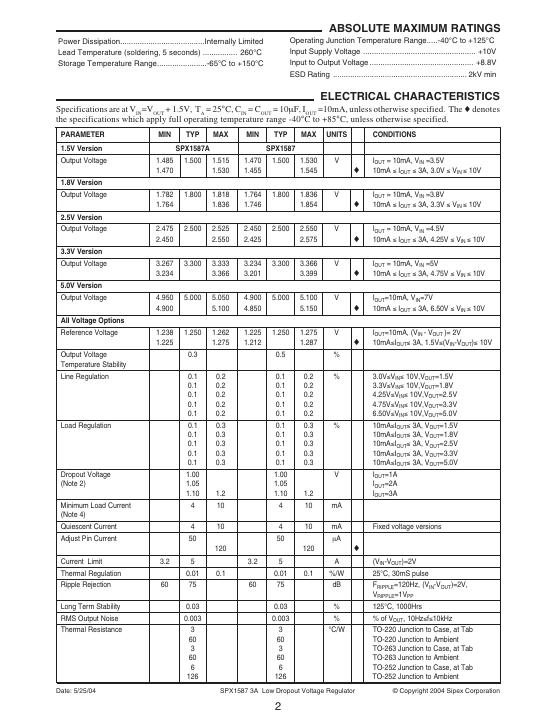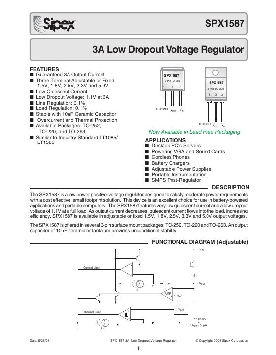 sipex SPX1587 3A Low Dropout Voltage Regulator 数据手册.pdf