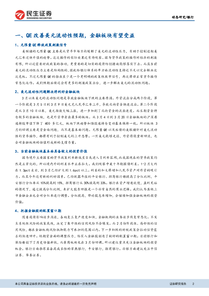 民生证券:银行:点评美联储无限量QE-QE改善美元流动性预期,金融板块有望受益.pdf