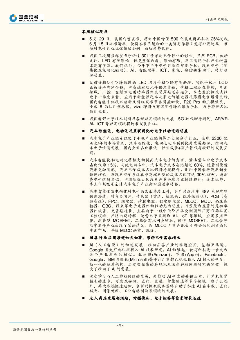 国金证券:电子行业研究周报:关注技术创新及新应用领域的发展.pdf