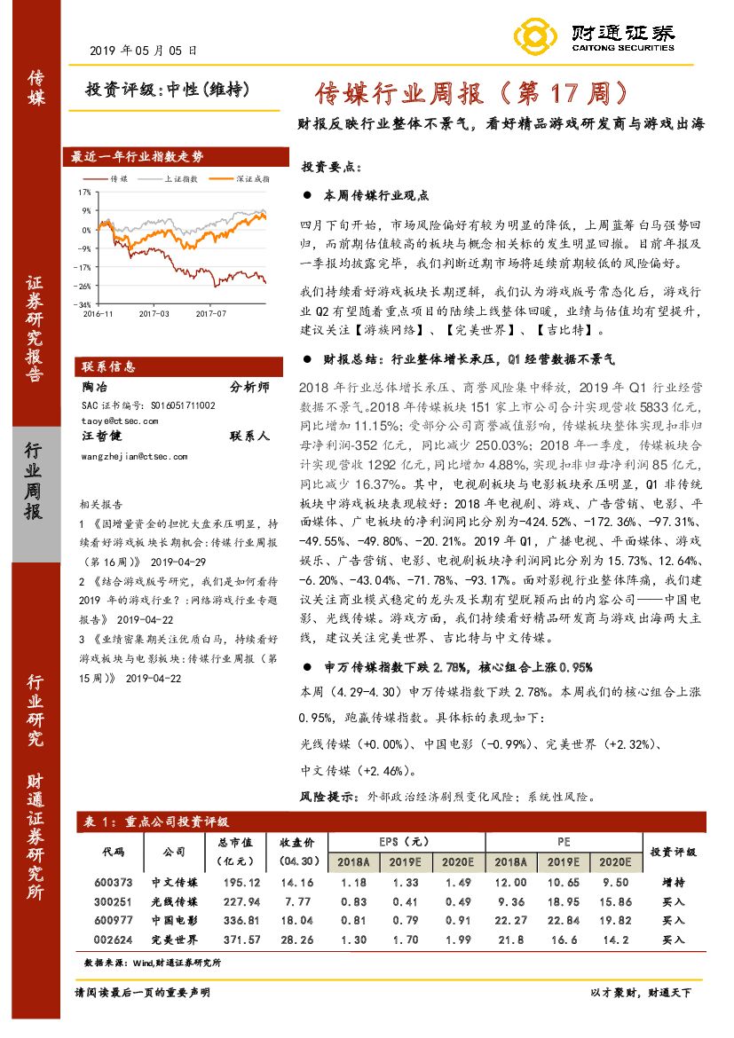财通证券:传媒行业周报(第17周):财报反映行业整体不景气,看好精品游戏研发商与游戏出海.pdf