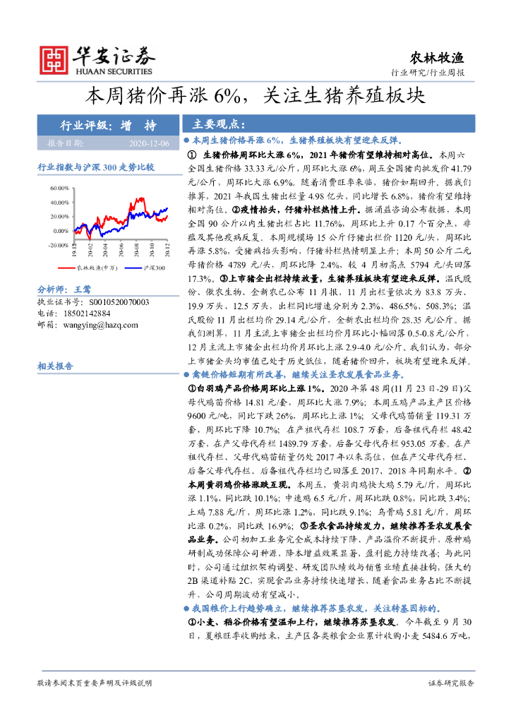 华安证券:农林牧渔行业周报:本周猪价再涨6%,关注生猪养殖板块.pdf