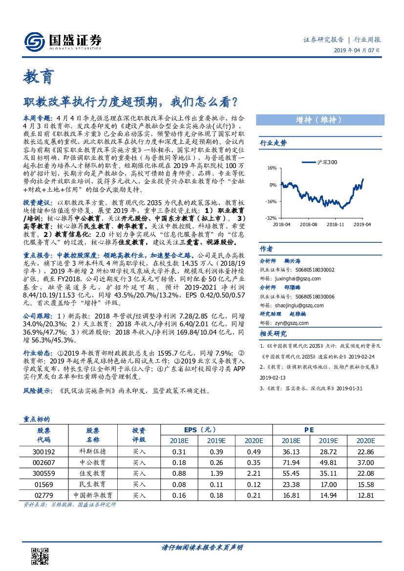 国盛证券:教育行业周报:职教改革执行力度超预期,我们怎么看?.pdf