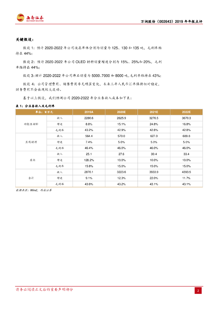 西南证券:万润股份(002643)-2019年业绩符合预期,一季度保持逆势增长.pdf
