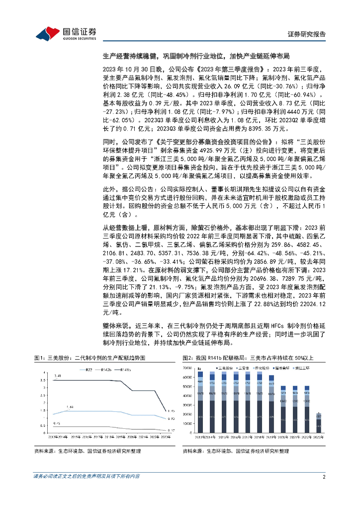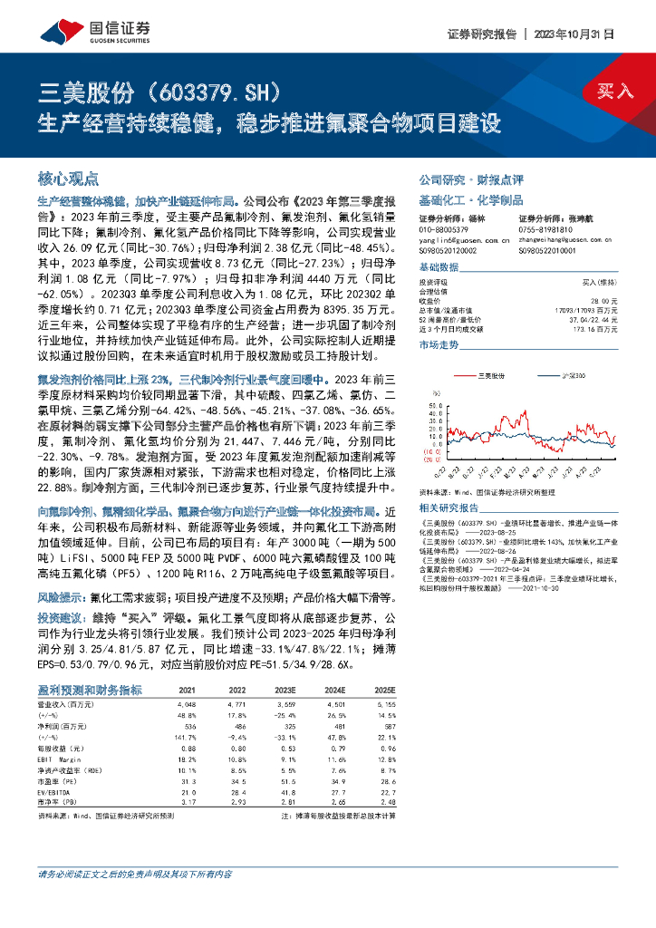 国信证券:三美股份(603379)-生产经营持续稳健,稳步推进氟聚合物项目建设.pdf