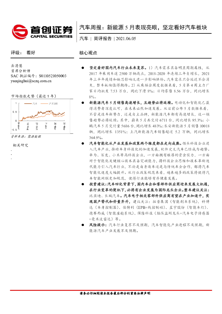 首创证券:汽车周报:新能源5月表现亮眼,坚定看好汽车板块.pdf