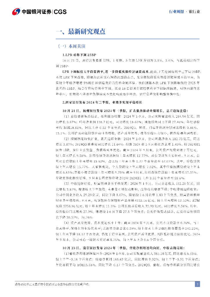 中国银河:银行业周报:降息落地,四家区域行三季报发布.pdf