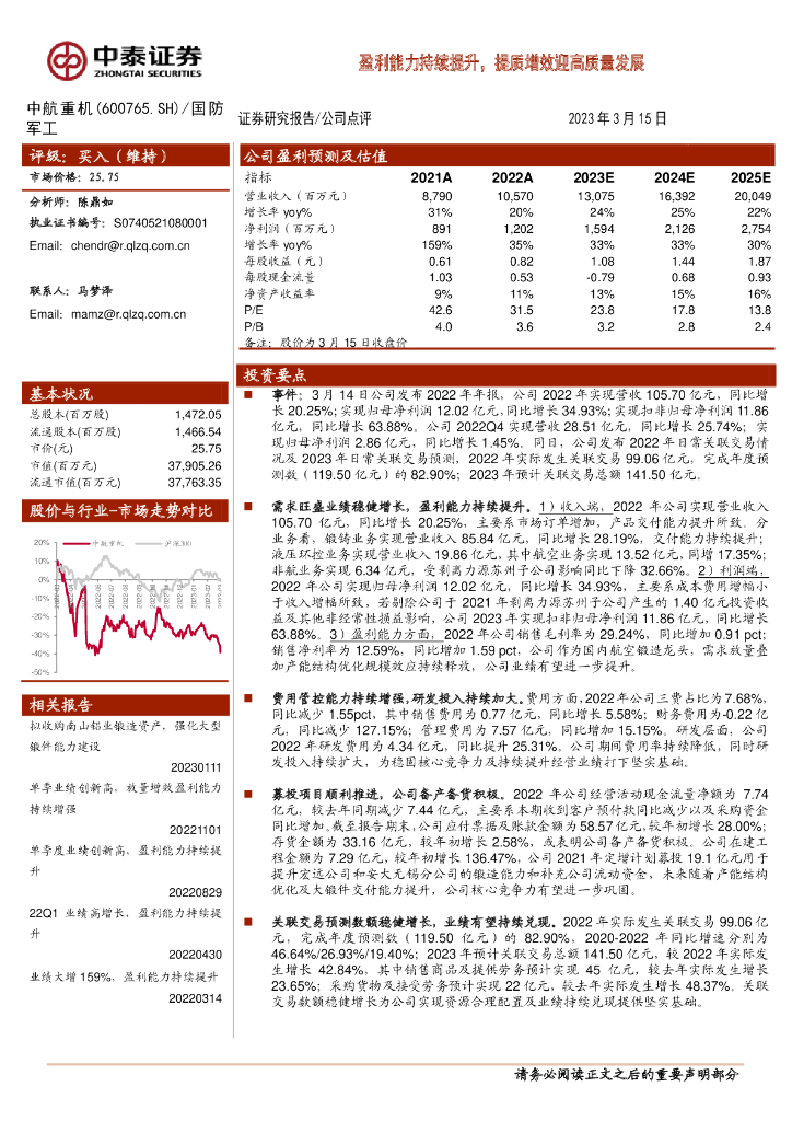 中泰证券:中航重机(600765)-盈利能力持续提升,提质增效迎高质量发展.pdf