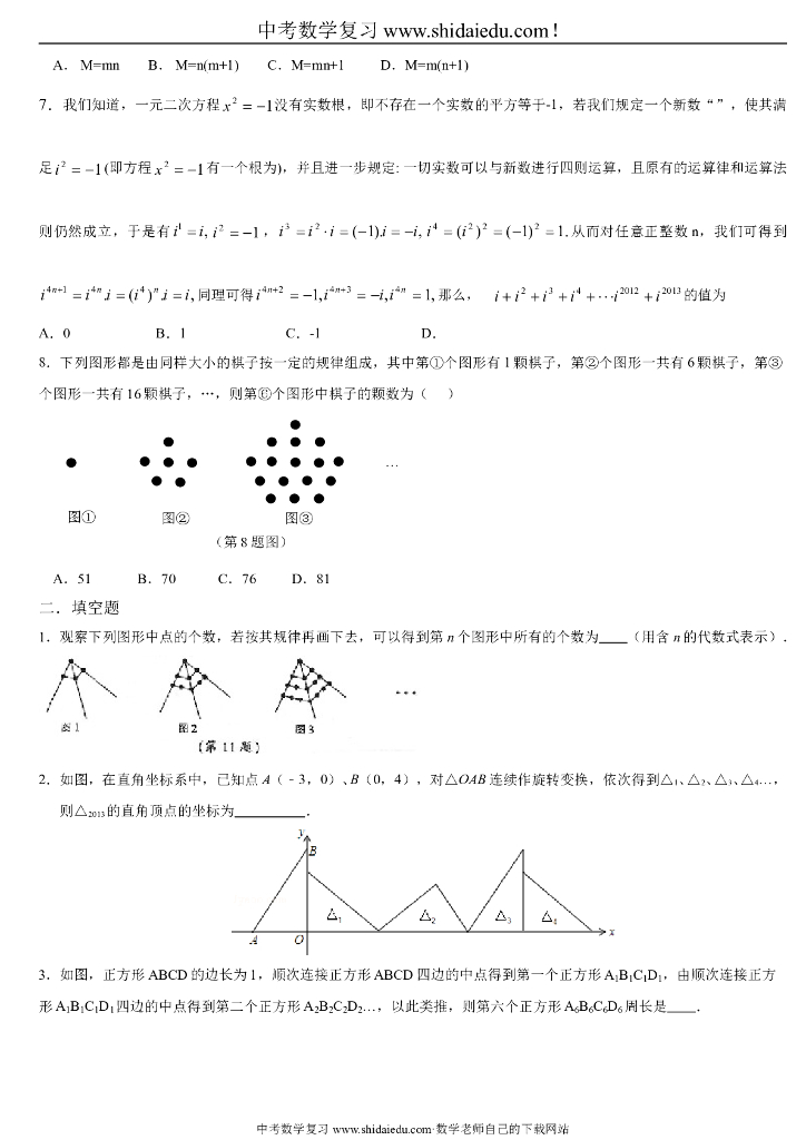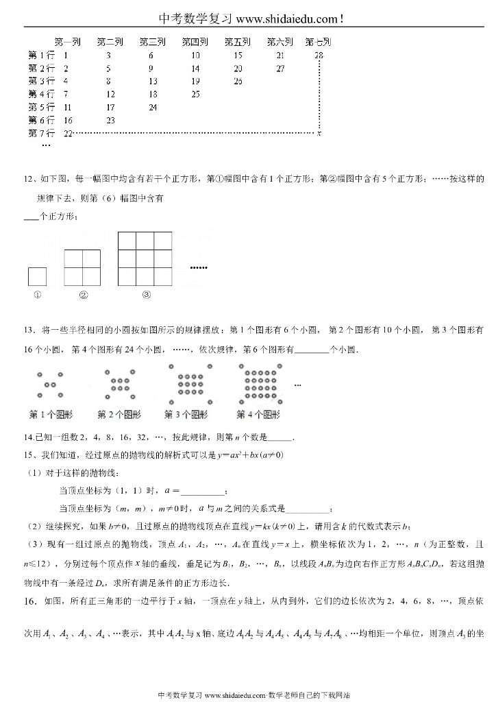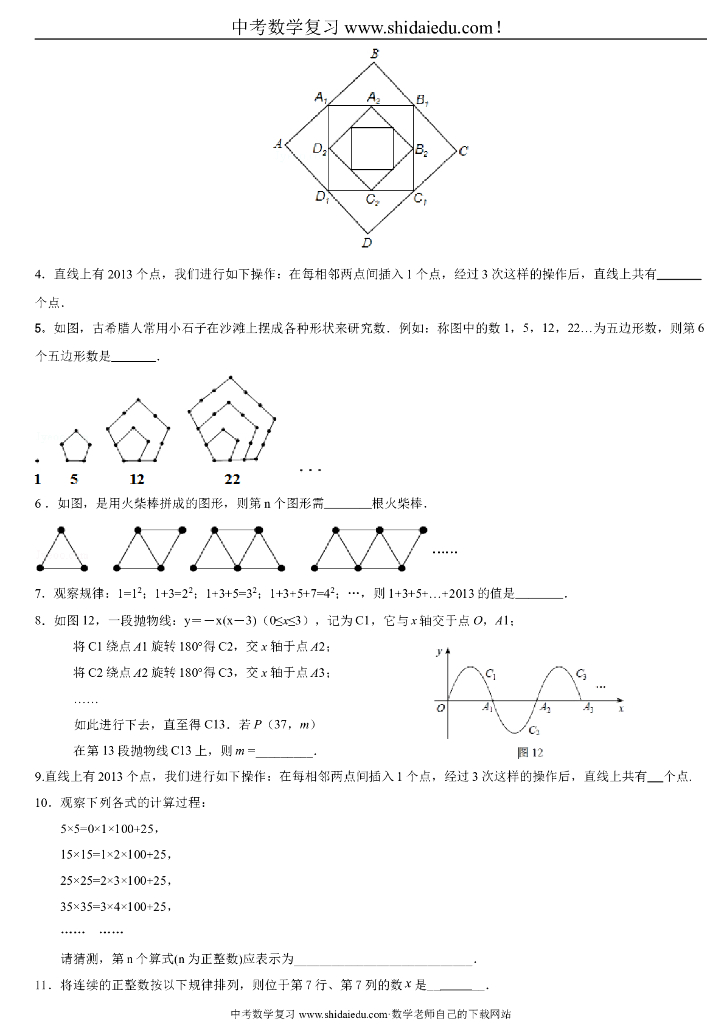 中考数学规律探索题(中考找规律题目-有答案).doc