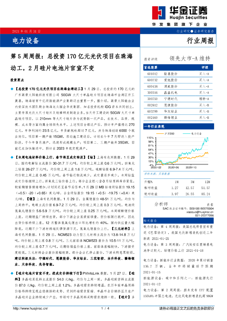 华金证券:电力设备第5周周报:总投资170亿元光伏项目在珠海动工,2月硅片电池片官宣不变.pdf