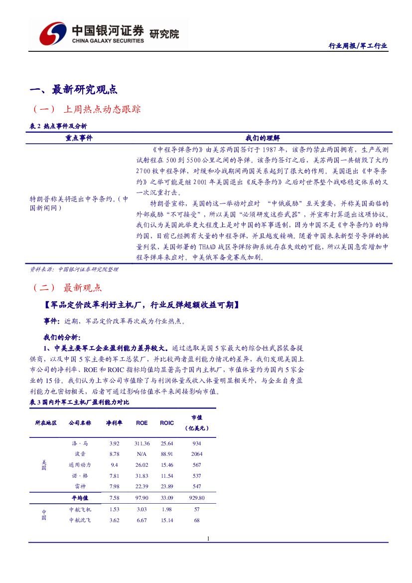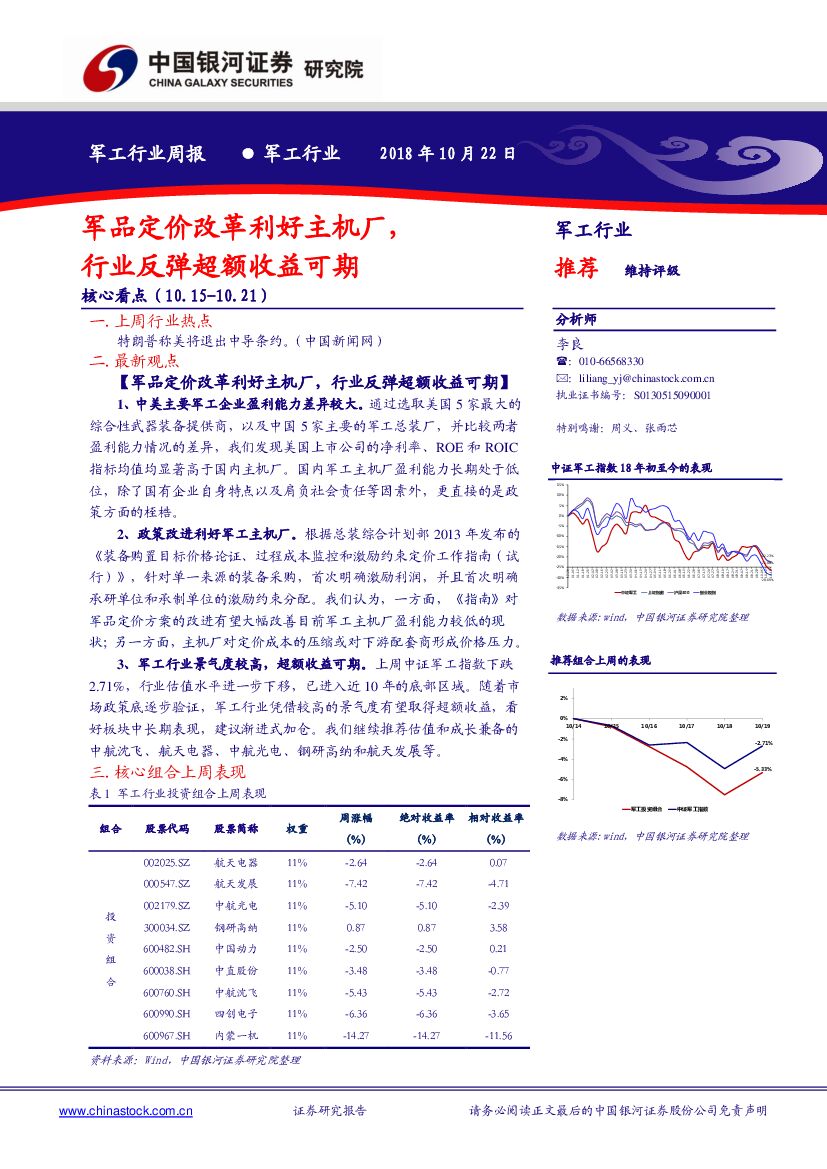 中国银河:军工行业周报:军品定价改革利好主机厂,行业反弹超额收益可期.pdf