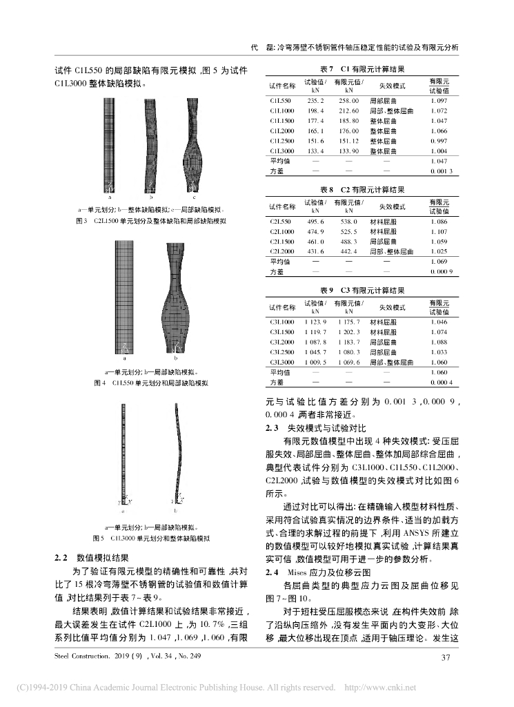 冷弯薄壁不锈钢管件轴压稳定性能试验有限元.pdf
