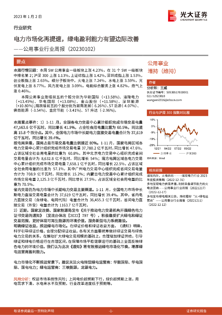 光大证券:公用事业行业周报:电力市场化再提速,绿电盈利能力有望边际改善.pdf