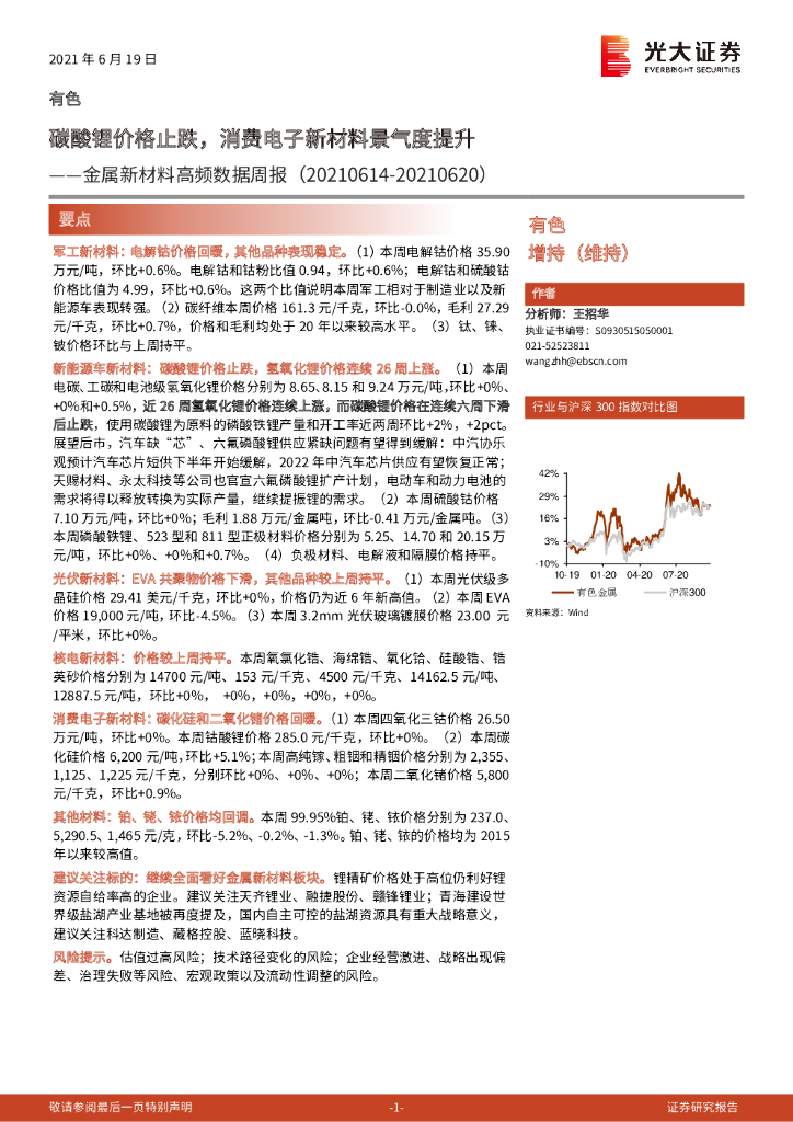 光大证券:金属新材料高频数据周报:碳酸锂价格止跌,消费电子新材料景气度提升.pdf