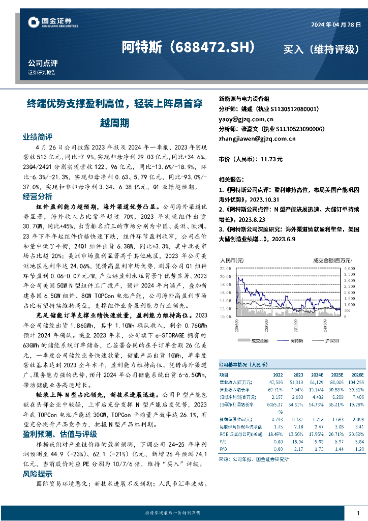 国金证券:阿特斯(688472)-终端优势支撑盈利高位,轻装上阵昂首穿越周期.pdf