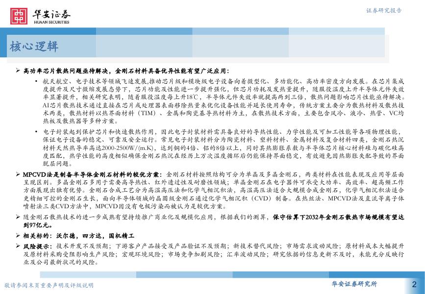 华安证券:金刚石散热行业深度:芯片集成化发展,推动材料应用新蓝海.pdf
