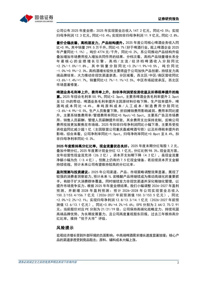 国信证券:重庆啤酒(600132)-2025年度啤酒量价改善,费用投放有所增加.pdf