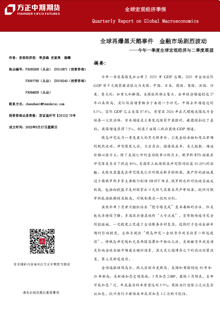 方正中期期货:全球宏观经济季报:今年一季度全球宏观经济与二季度展望-全球再爆黑天鹅事件 金融市场剧烈波动.pdf
