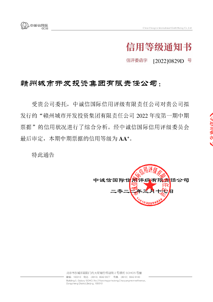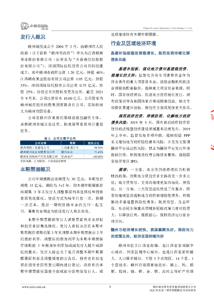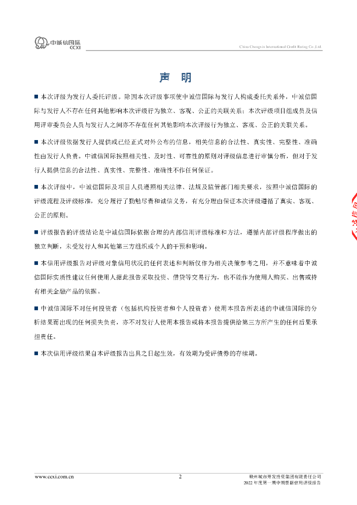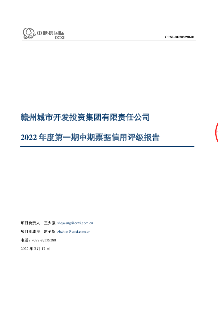 中诚信:赣州城市开发投资集团有限责任公司2022年度第一期中期票据信用评级报告.pdf