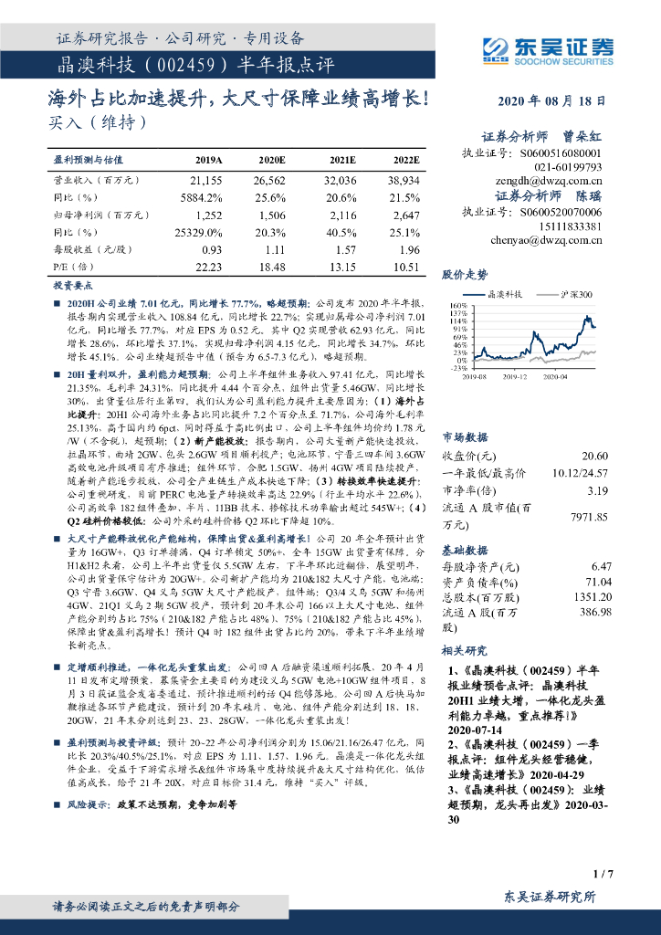 东吴证券:晶澳科技(002459)-半年报点评:海外占比加速提升,大尺寸保障业绩高增长!.pdf