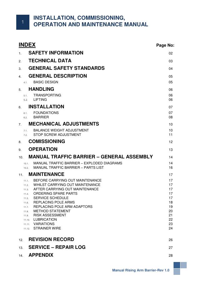 手动升降臂栏杆安装、调试、操作与维护手册.pdf