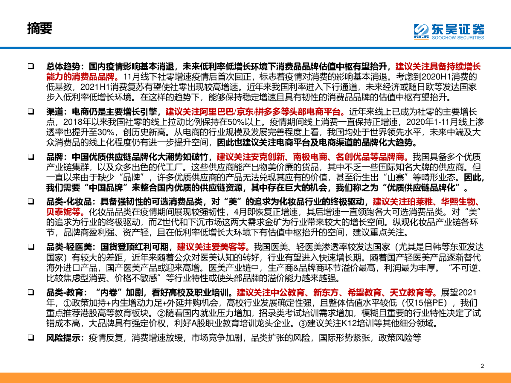 东吴证券:2021零售&教育行业年度策略:中国优质供应链品牌化强势崛起,低利率大环境下消费估值中枢抬升.pdf