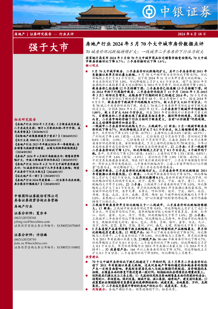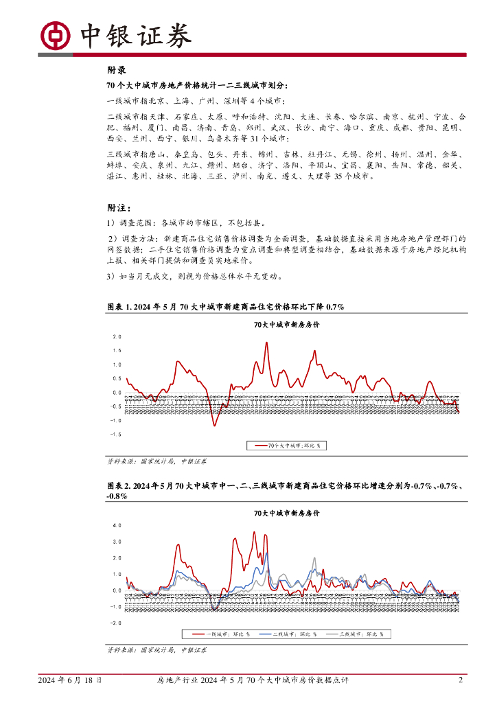中银证券:房地产行业2024年5月70个大中城市房价数据点评:70城房价环比跌幅持续扩大;一线城市二手房房价下行压力较大.pdf
