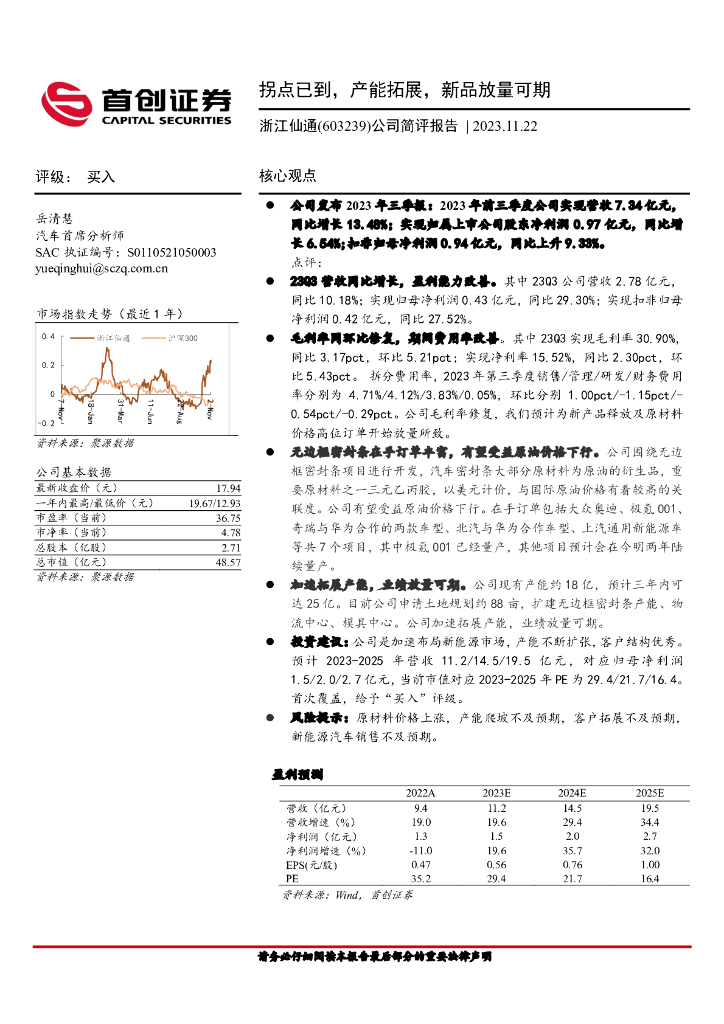 首创证券:浙江仙通(603239)-公司简评报告:拐点已到,产能拓展,新品放量可期.pdf
