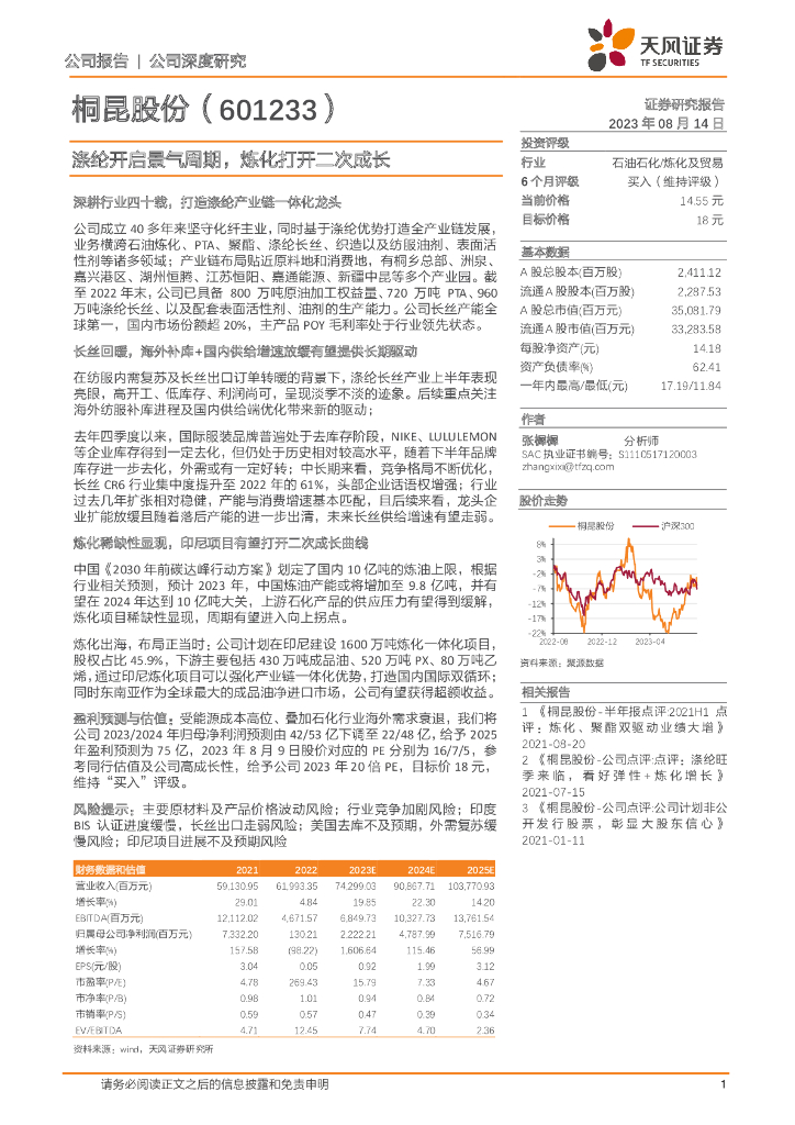 天风证券:桐昆股份(601233)-涤纶开启景气周期,炼化打开二次成长.pdf