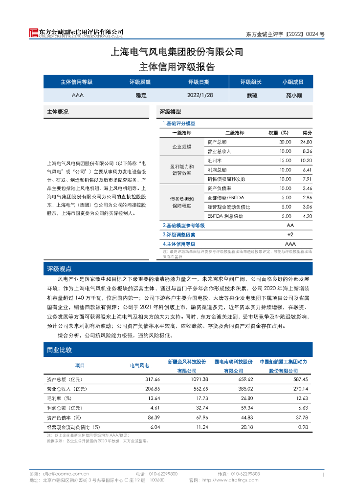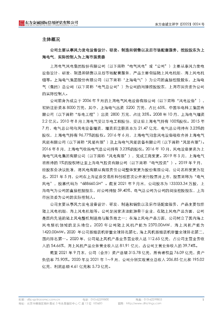 东方金诚:上海电气风电集团股份有限公司主体信用评级报告.pdf