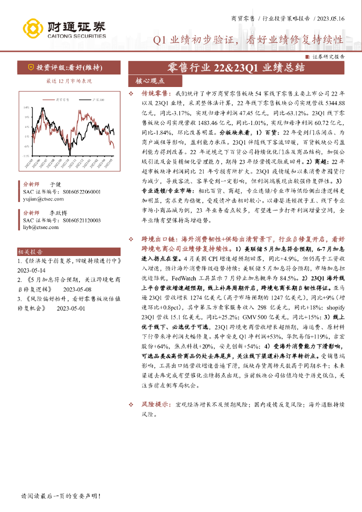 财通证券:零售行业22&23Q1业绩总结:Q1业绩初步验证,看好业绩修复持续性.pdf