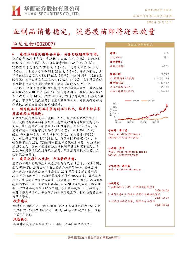 华西证券:华兰生物(002007)-血制品销售稳定,流感疫苗即将迎来放量.pdf