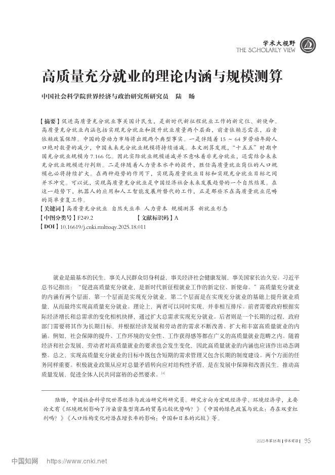中国社会科学院世经政所:高质量充分就业的理论内涵与规模测算.pdf
