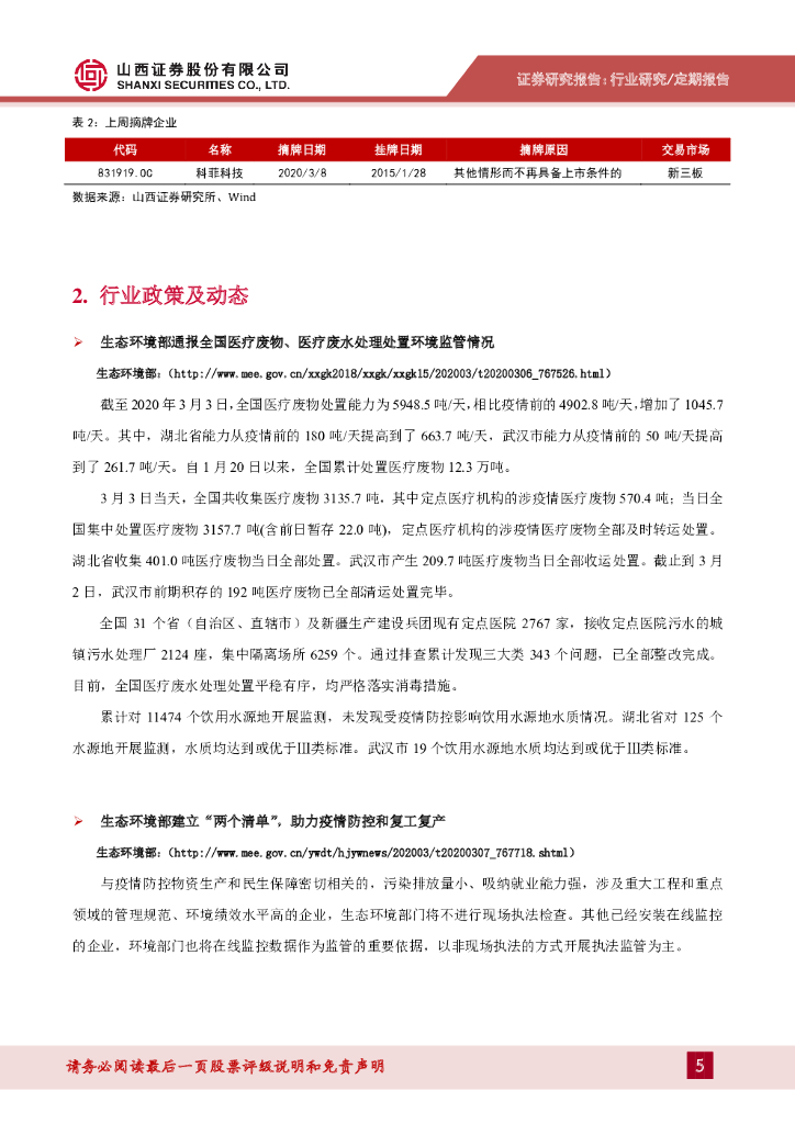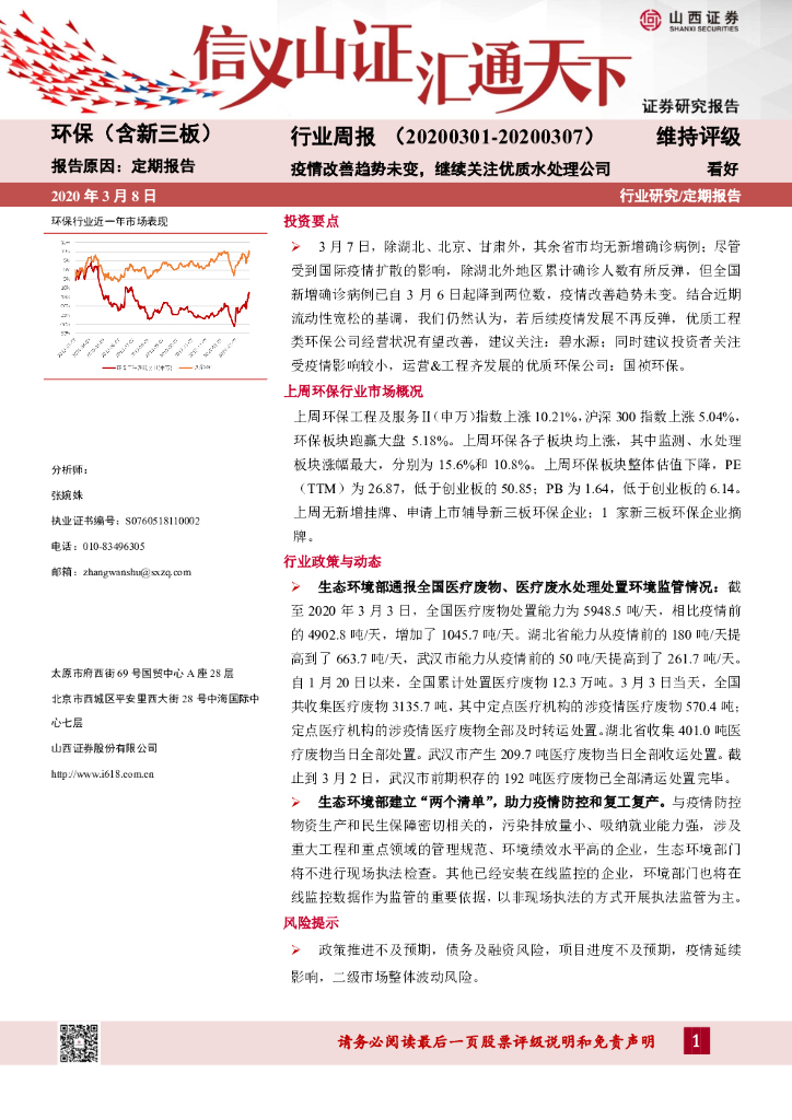 山西证券:环保(含新三板)行业周报:疫情改善趋势未变,继续关注优质水处理公司.pdf