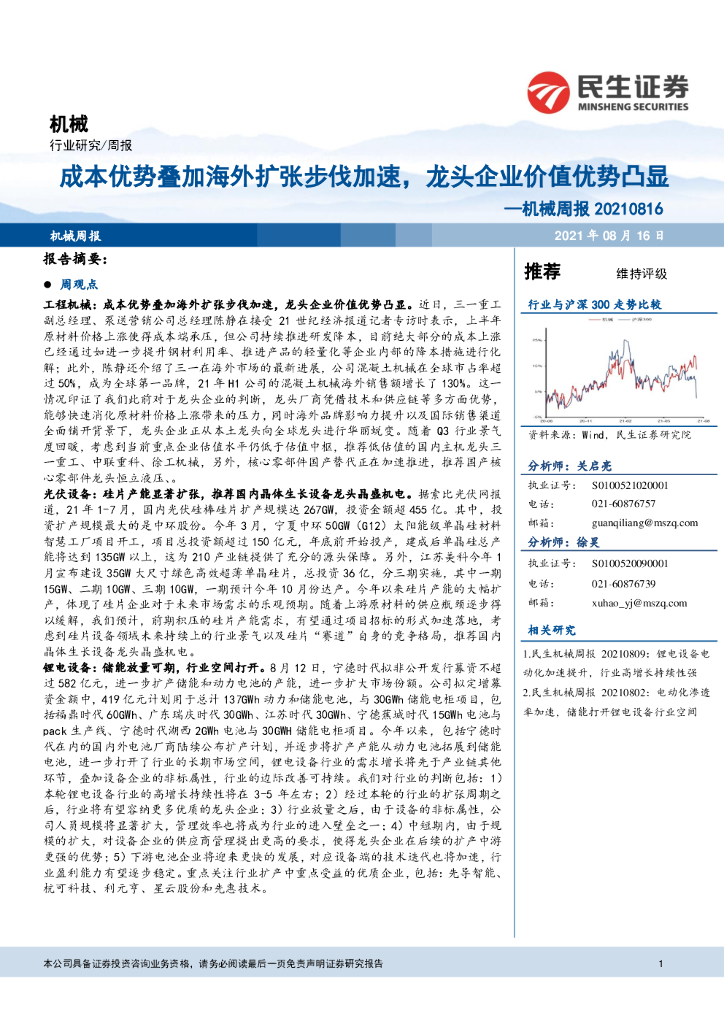 民生证券:机械周报:成本优势叠加海外扩张步伐加速,龙头企业价值优势凸显.pdf