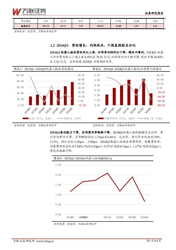 万联证券:机器人行业2023及2024Q1业绩综述报告:2023年业绩有所好转,2024Q1表现分化.pdf