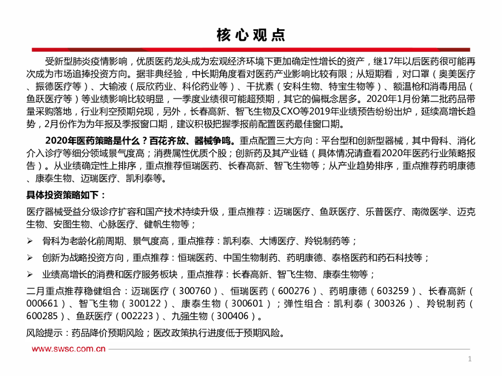 西南证券:2020年2月医药行业投资策略:百花齐放,器械争鸣.pdf