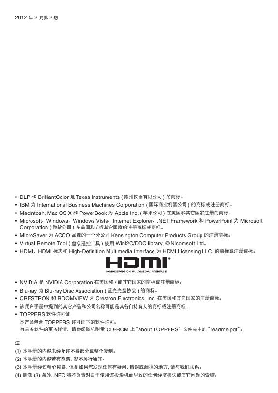 NEC NP-V300X+/NP-V260X+/NP-V230X+/NP-V260+/NP-V230+/NP-V300W+/NP-V260W+ 便携投影机 用户手册.pdf