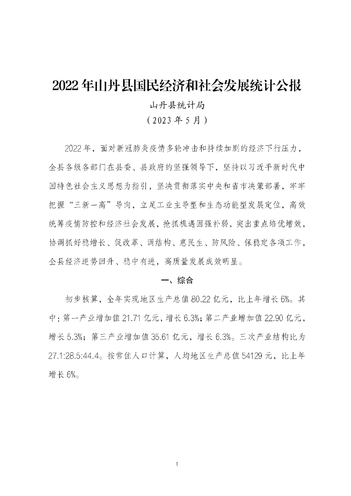 2022年山丹县国民经济和社会发展统计公报.pdf