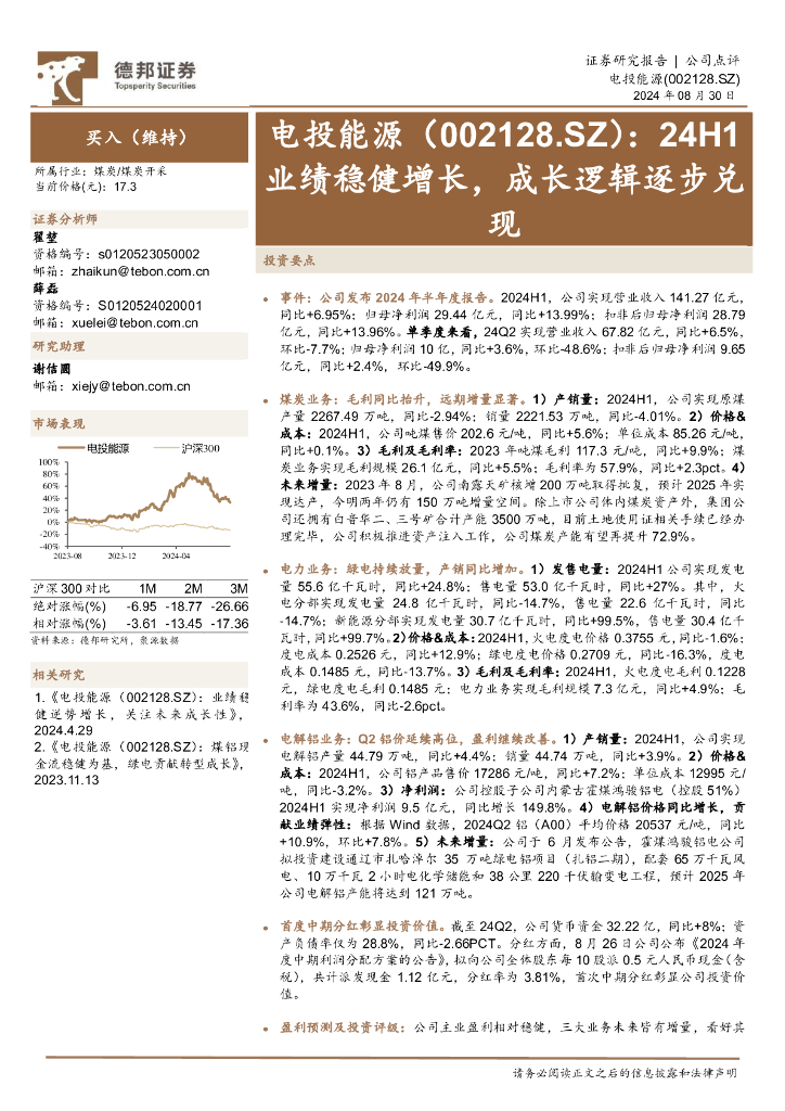 德邦证券:电投能源(002128)-24H1业绩稳健增长,成长逻辑逐步兑现.pdf