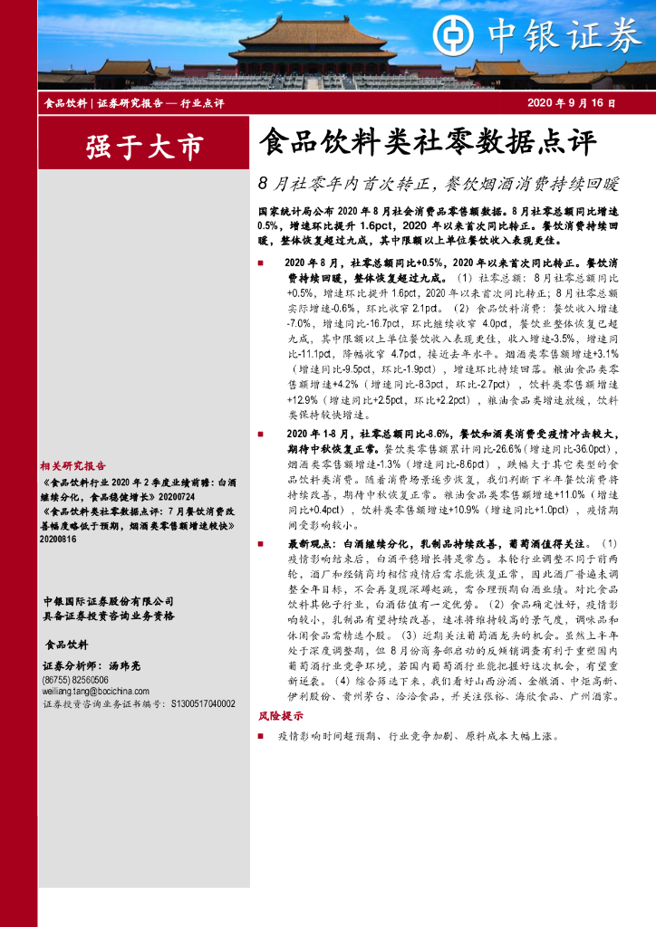 中银证券:食品饮料类社零数据点评:8月社零年内首次转正,餐饮烟酒消费持续回暖.pdf