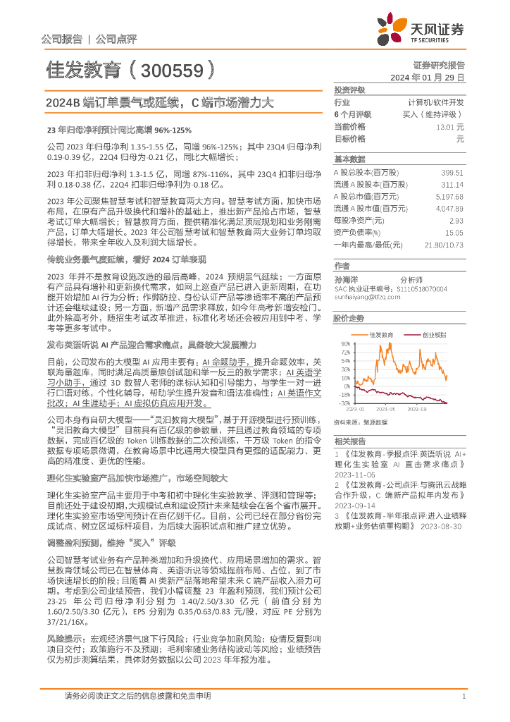 天风证券:佳发教育(300559)-2024B端订单景气或延续,C端市场潜力大.pdf