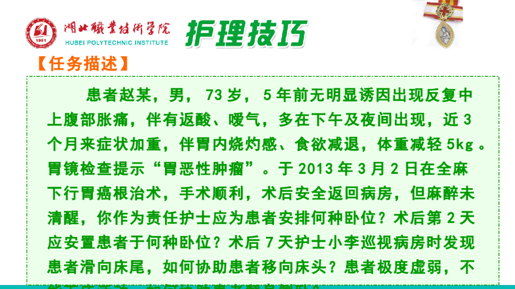 《护理技巧》演示文稿-子任务二 协助患者更换卧位.pdf