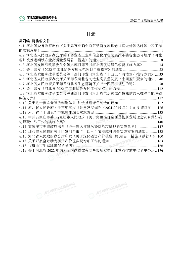 河北碳排放权服务中心:2022年度碳达峰碳中和政策法规汇编(第四编河北省文件).pdf