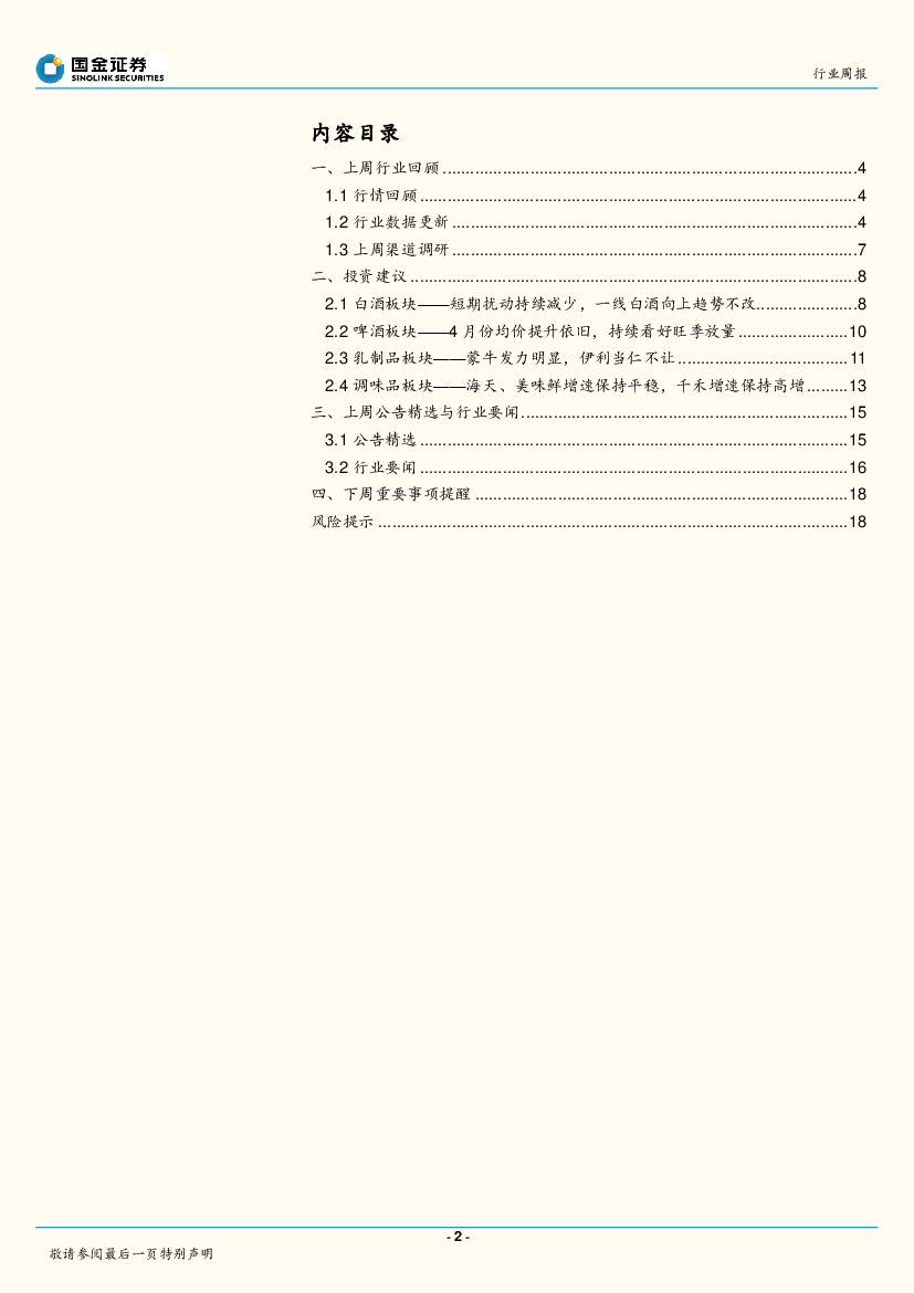 国金证券:食品饮料行业周报:一线白酒趋势向上,大众品景气度依旧.pdf